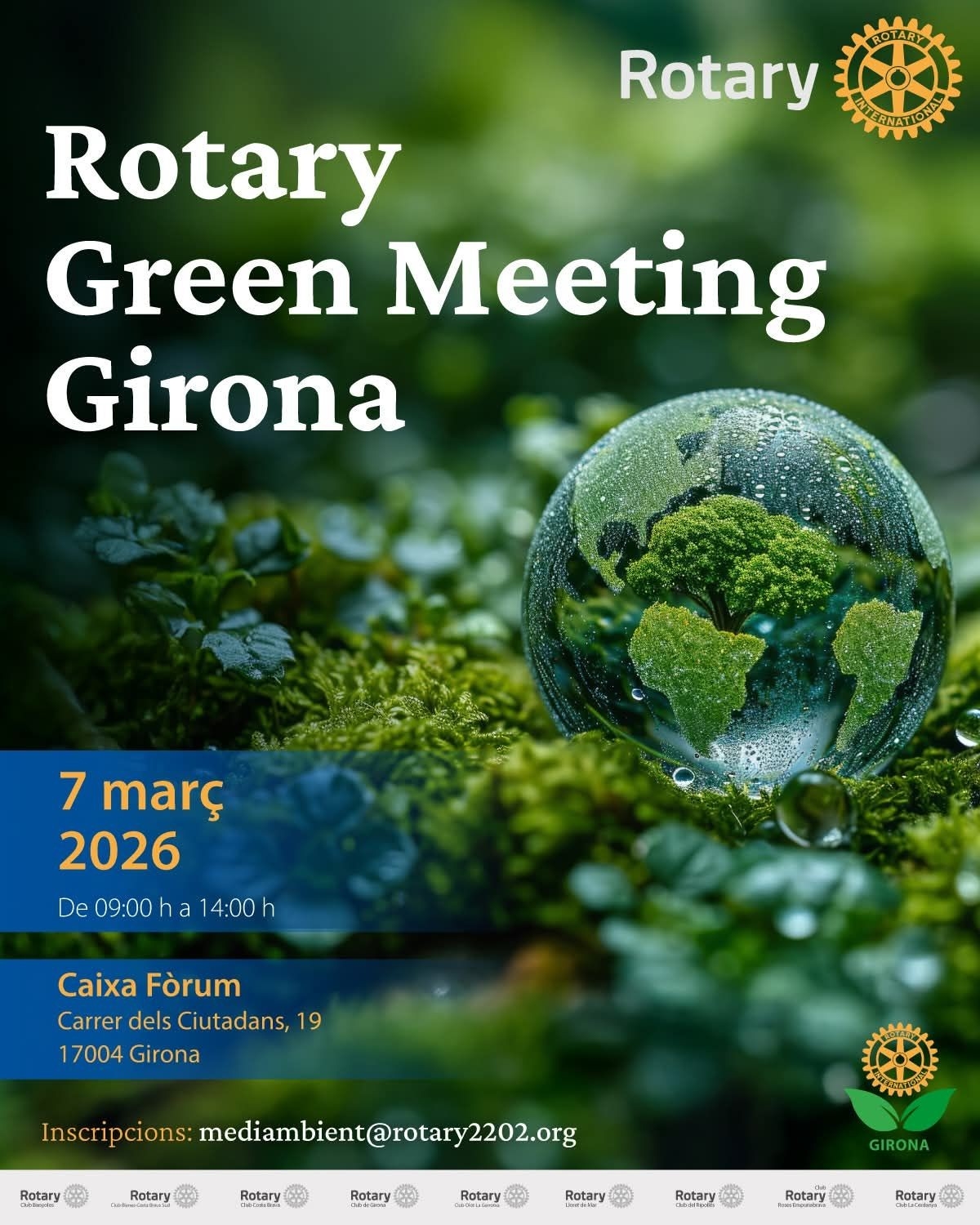 La sostenibilidad y la protección del medio ambiente son retos globales que requieren acciones concretas y compromiso a nivel local. Con esta visión, el Comité de Medio Ambiente en Girona del Distrito Rotary 2202 organiza el Rotary Green Meeting Girona, un espacio de encuentro para debatir, inspirar e impulsar iniciativas que contribuyan a preservar nuestro entorno.